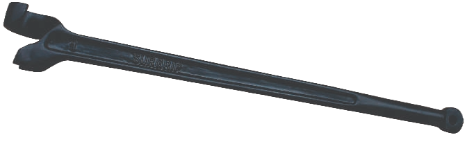 Surgrip Double valve wheel wrench made of ductile iron wrenches are safer and easir to use because the head design provides a better grip and allows the operatior tp rest the wrench on top of the wheel when opening the valves